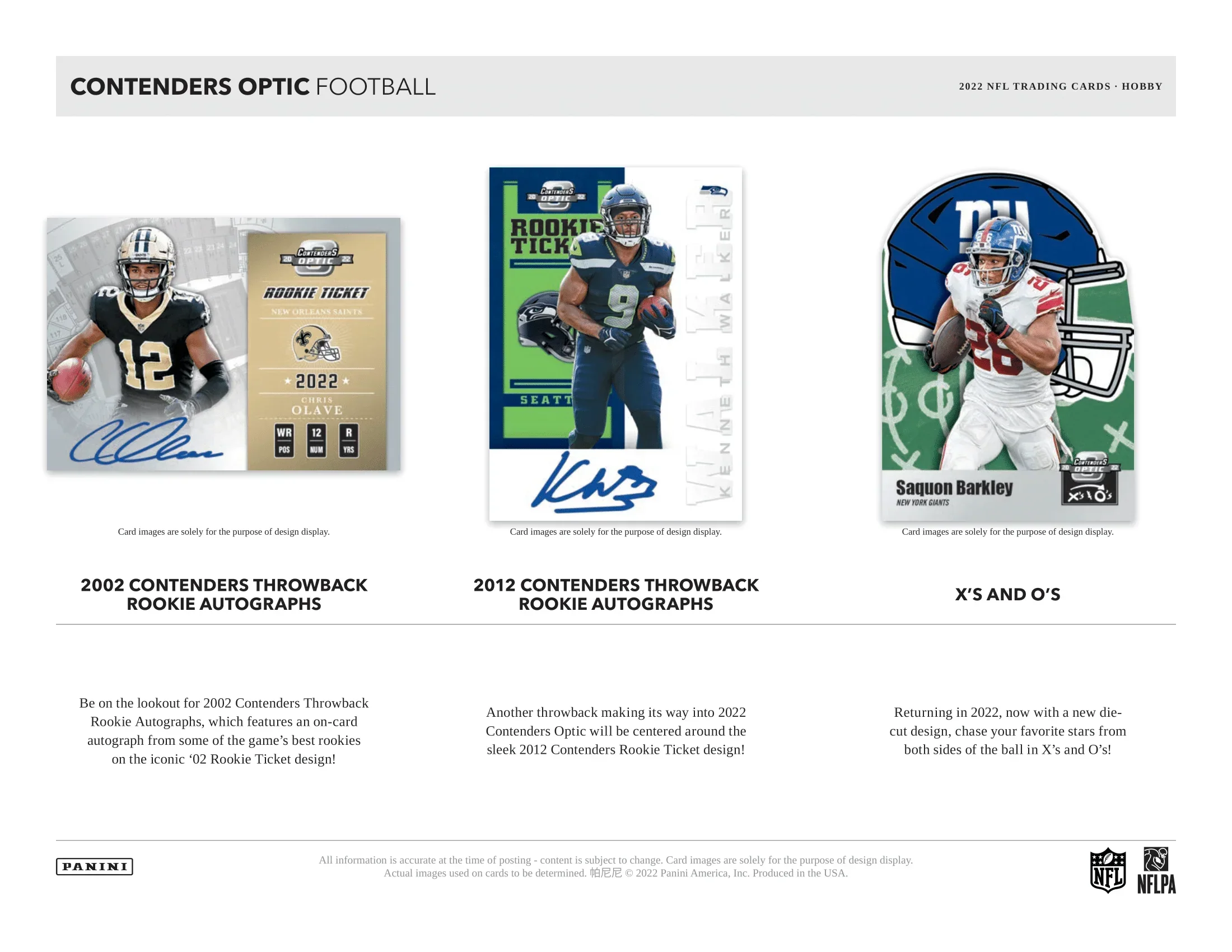 - Be on the lookout for 2002 Contenders Throwback Rookie Autographs, which features an ON-CARD autograph from some of the game’s best rookies on the iconic 2002 Rookie Ticket design!